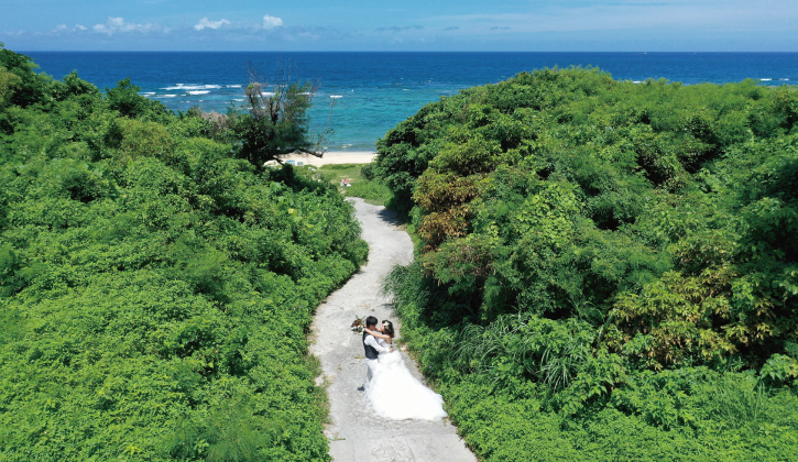 海外ビーチにも劣らぬ美しさを誇る、日本屈指のリゾート沖縄。美しいビーチやチャペル、琉球の街並み、ガジュマルの並木道などフォトジェニックな撮影スポットがたくさんあります。海外ではなかなか難しいドローンでの空撮プランもおすすめです。 ※ハネムーンフォトのみでも手配OKです。