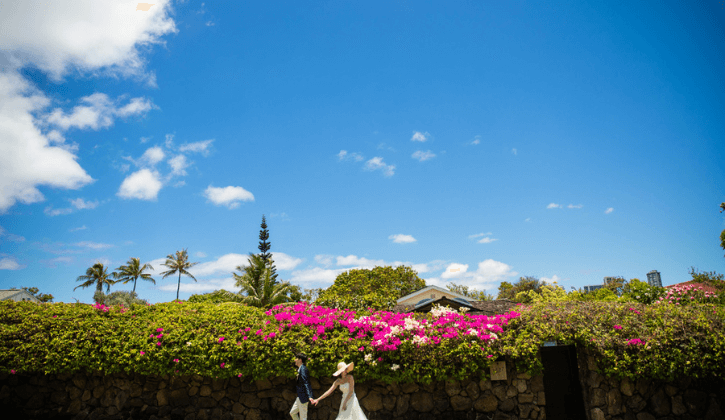 ダイヤモンドヘッド麓の広大な敷地に佇む邸宅風のチャペル。清らかなピュアホワイトと木のぬくもり、やわらかなキャンドルの光がふたりを包み込む神聖なチャペルや、心地良いハワイの風、ヤシの木のざわめきを感じるガーデンで美しく、華やかな写真を撮影することができます。ワイキキ近郊ビーチやモンサラット通りでの撮影も含まれ、たくさんの写真が残せるラグジュアリーなフォトプランです。